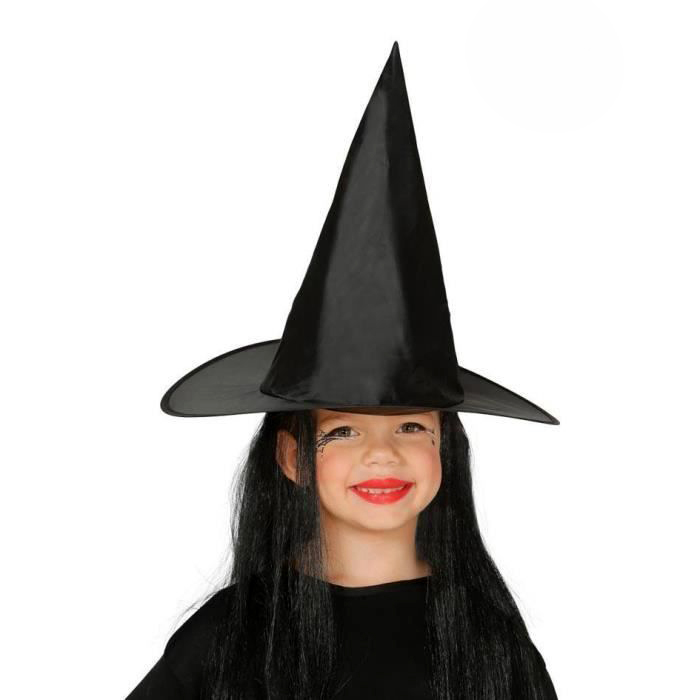 Детска црна вештерска капа и долга црна вештерска перука