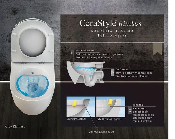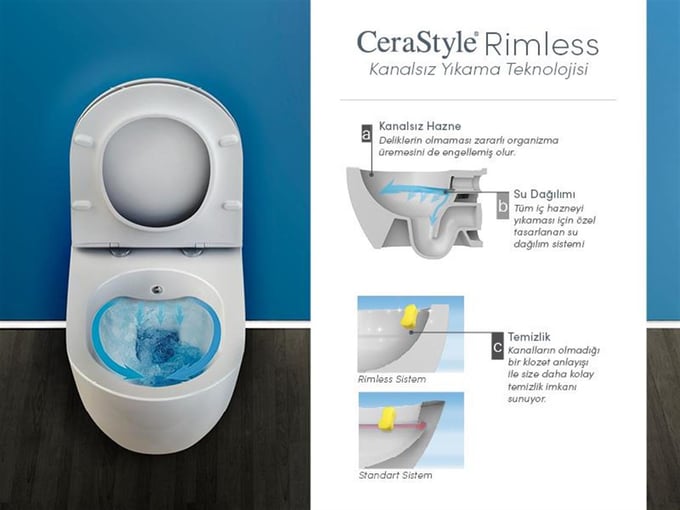 Turkuaz Cerastyle Aqua Rimless Каналес Асма Клозет и Дуру ПП Слим Ланго Капак.