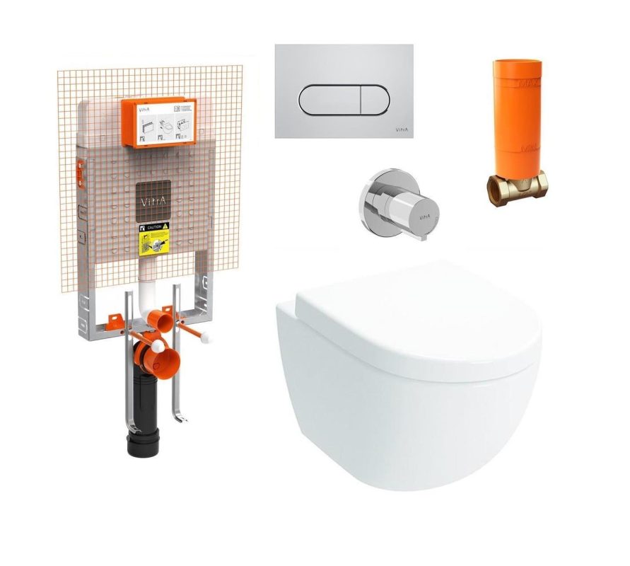 VitrA Sento Rim-ex Бела без канали веш казан, вграден резервоар комплетен сет 800-2027