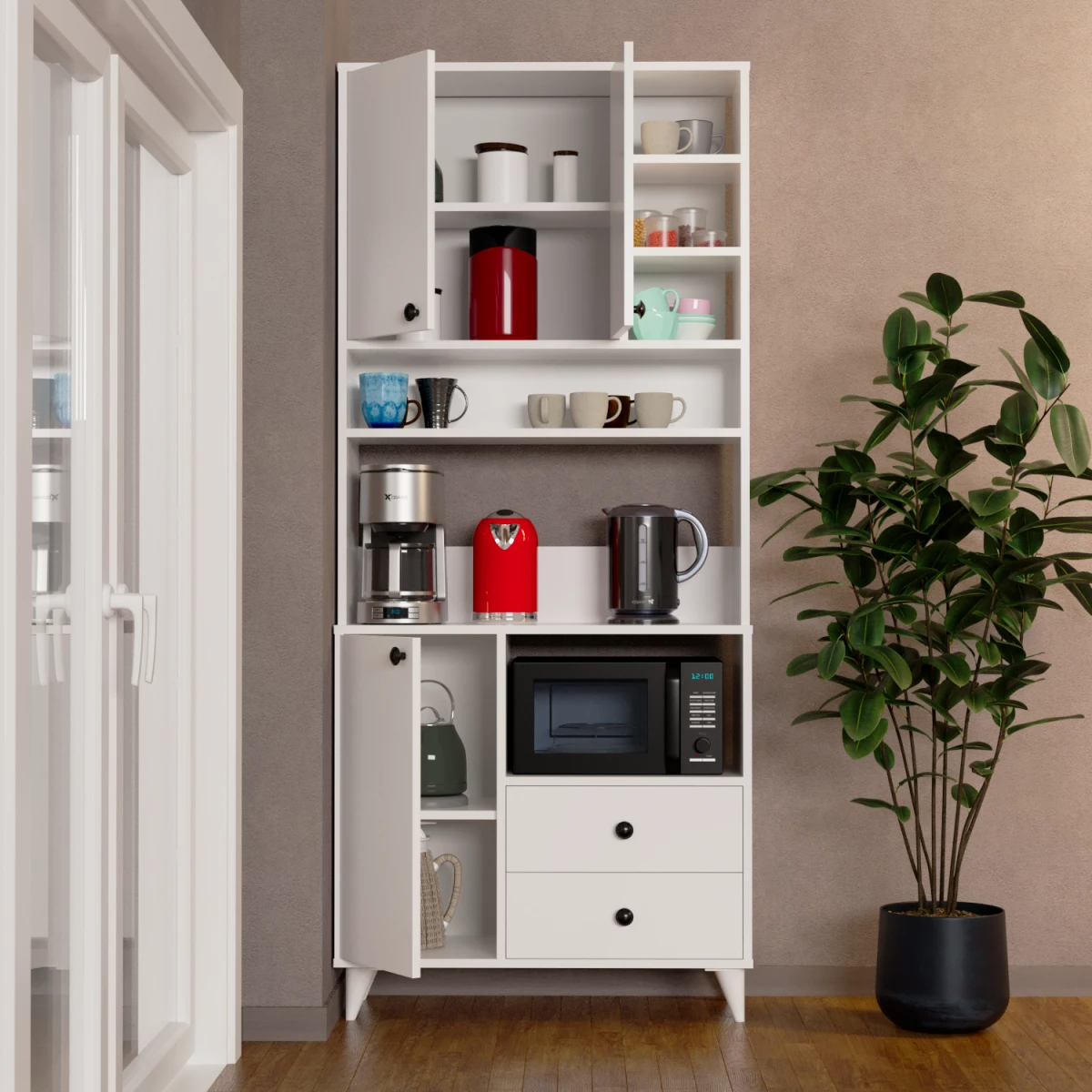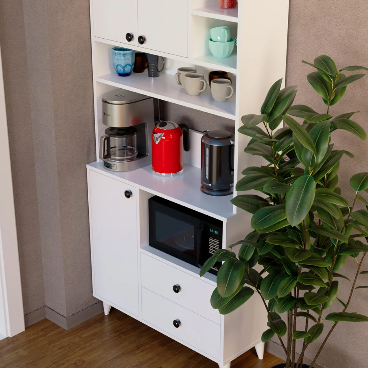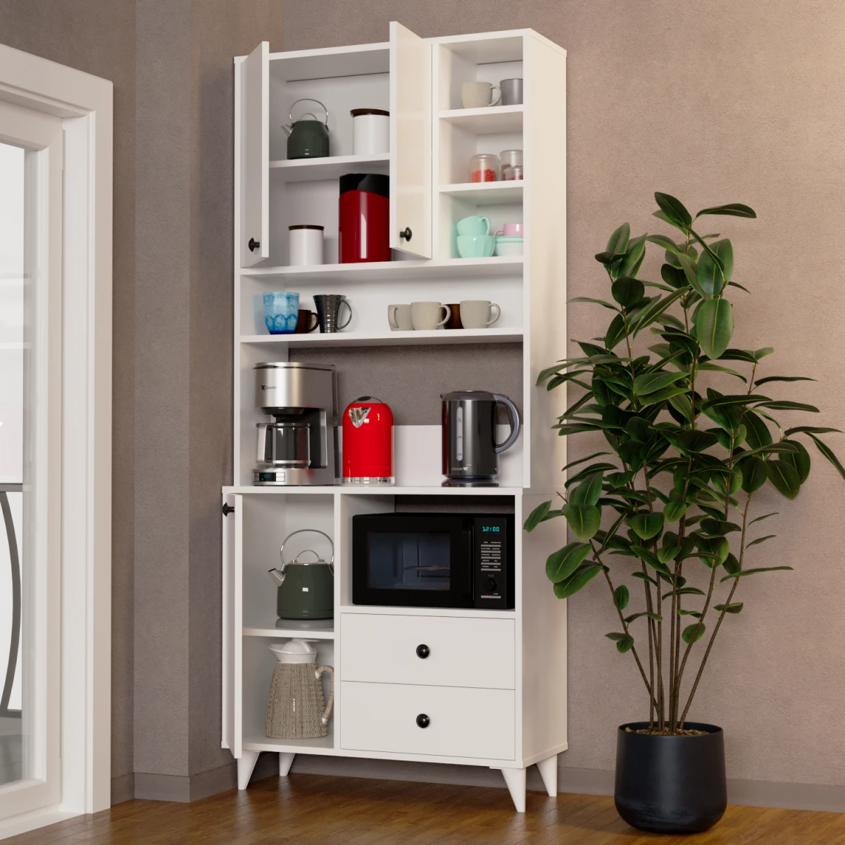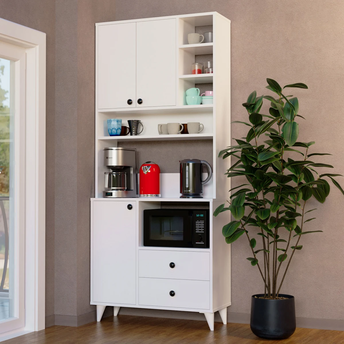 Атлас Кафе Агол Мултифункционален Плакар е дизајниран за уредно поставување на кафемат, шолји, тегли и разни кујнски предмети во кујна, дневна соба, канцеларија или кафе. Со својот елегантен и едноставен дизајн, му дава на просторот модерен и свеж изглед.