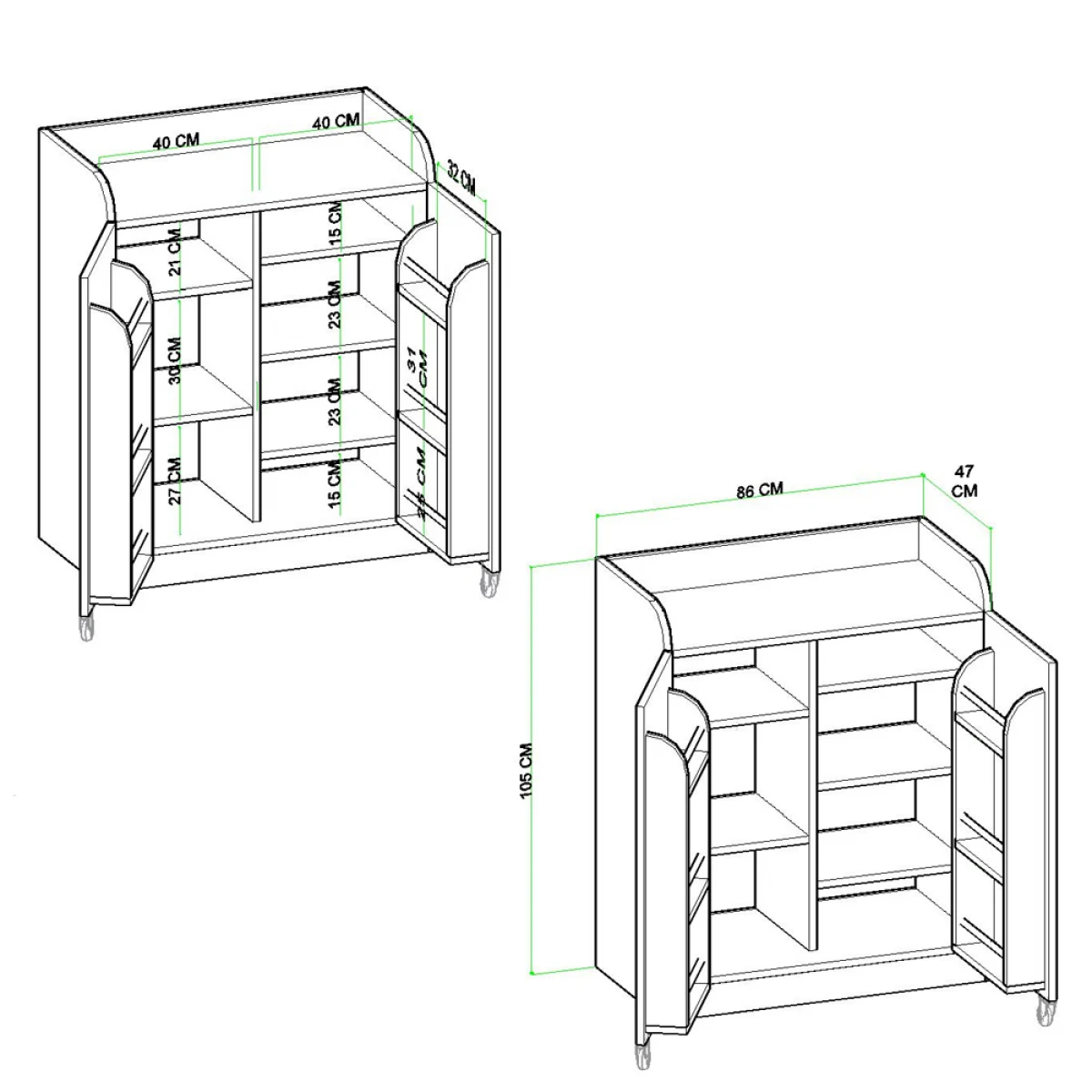 Забелешка: Аксесоарите и другите производи прикажани на сликите не се вклучени во цената. Производот кој се продава е шкафот.