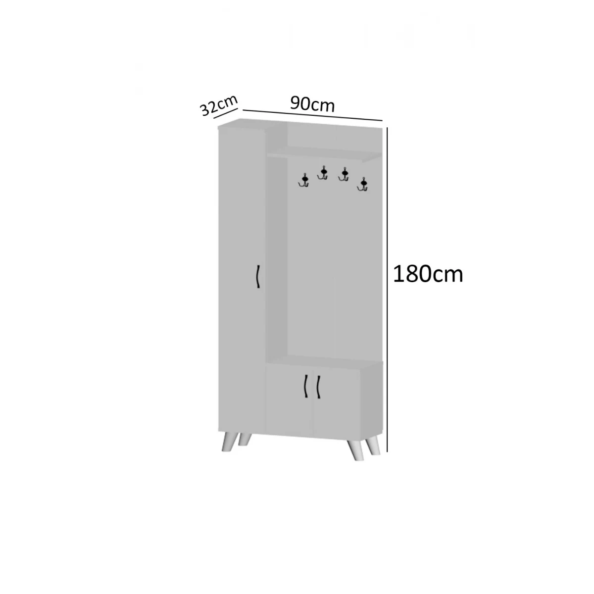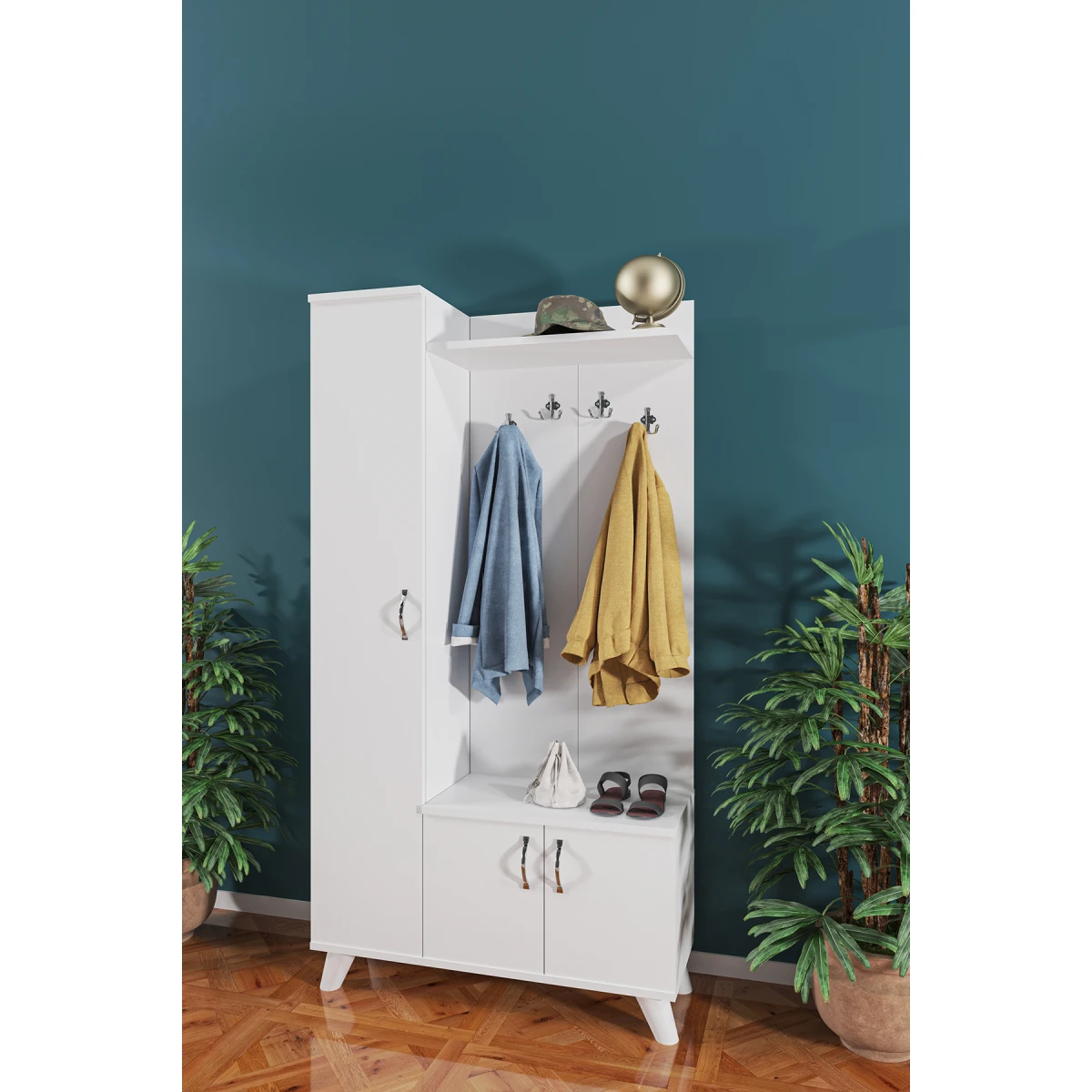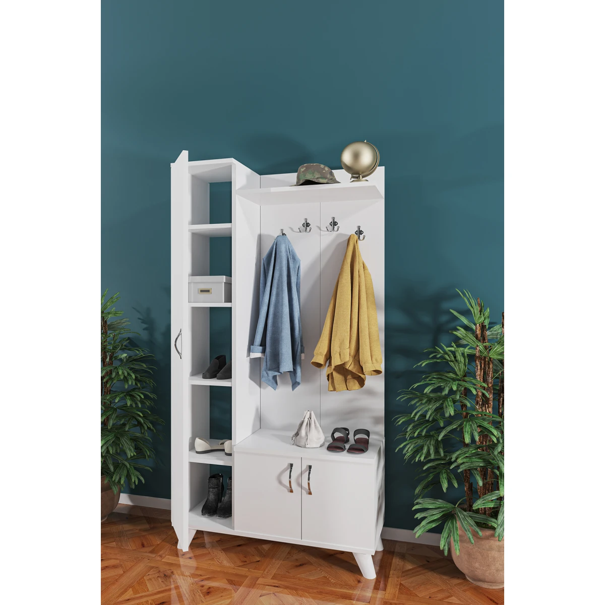 Еко Портманто Вестибюлот, кој ви овозможува ефикасно користење на просторот во вашиот дом, е идеално решение за складирање за вашите претсобја и ходници со својот модерен и функционален дизајн. Изработен е од материјали кои се во согласност со европските Е1 стандарди за квалитет и може безбедно да се користи многу години благодарение на неговата цврста структура. Со структура која е отпорна на влага и мувла, е погоден за секојдневна употреба. Благодарение на антибактериската и антиканцерогената структура на материјалот, е погоден за животната средина и здравјето на децата.