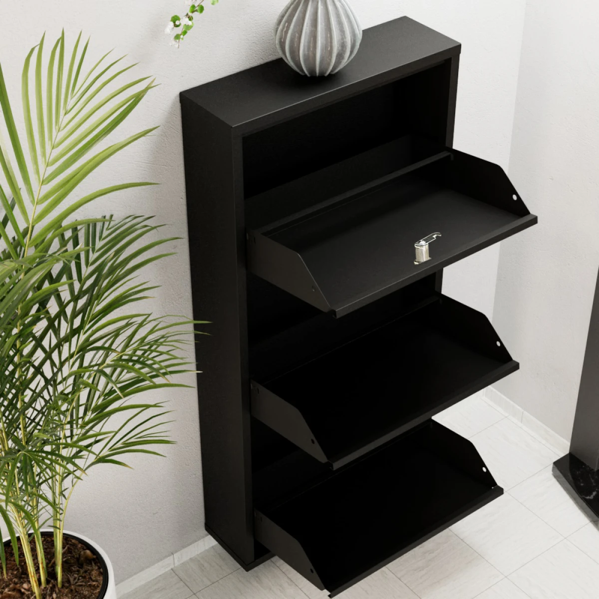 Заклучувачка Метална Полица за Чевли со 3 Врати / Црна