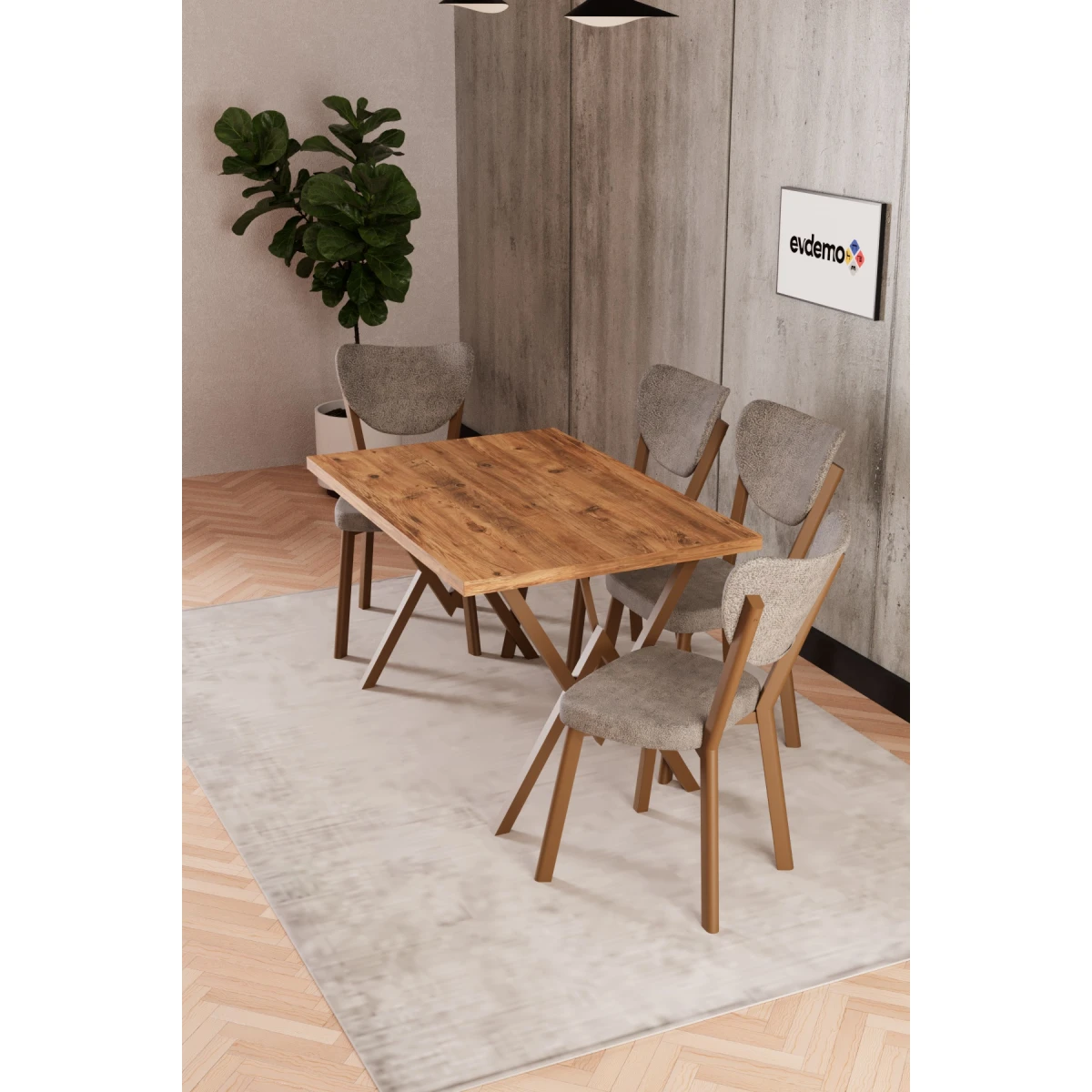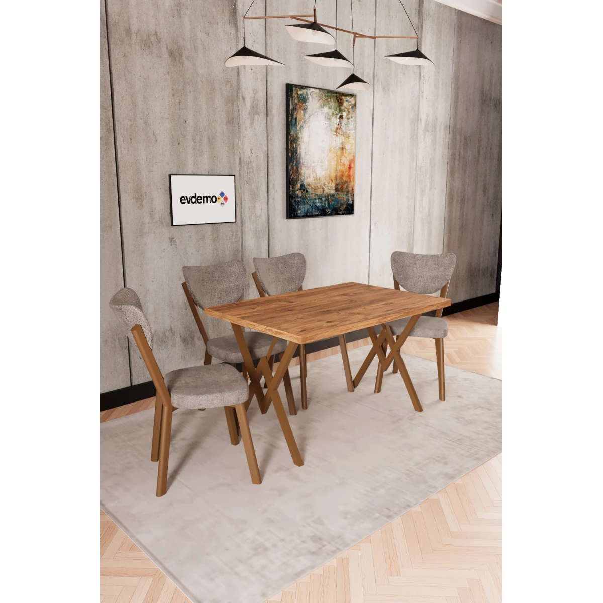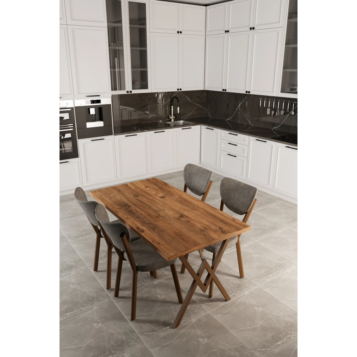 Комплетот маса за јадење Elma за 4 лица; со својот модерен кафеав дизајн, на вашите кујнски и трпезариски простории им дава елегантен и практичен изглед. Благодарение на издржливата метална конструкција на нозете и ергономските столици, нуди долготрајна и удобна употреба.