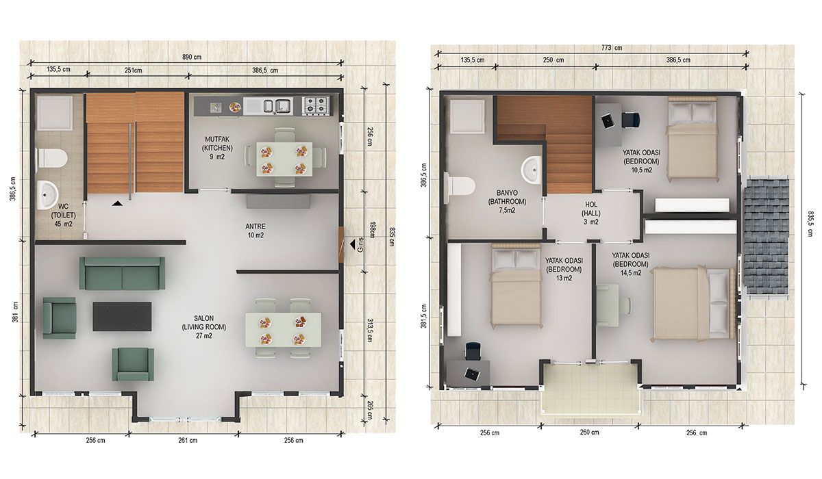 125 m² префабрикувана вила е специјално дизајнирана за луксузни станбени очекувања. Модерната архитектонска естетика успешно е одразена во надворешниот дизајн. За да се обезбеди што поголема осветленост на внатрешниот простор, прозорците се користени интензивно. Типот на стан 3+1, кој се протега од приземјето до првиот кат, се истакнува со својата најдобра ергономија. Со пространи и светли простории, комфор и мир од дневната соба до собите се среќаваат со вас во префабрикуваната вила.