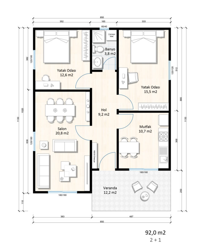 • Вкупна Површина: 92 m²