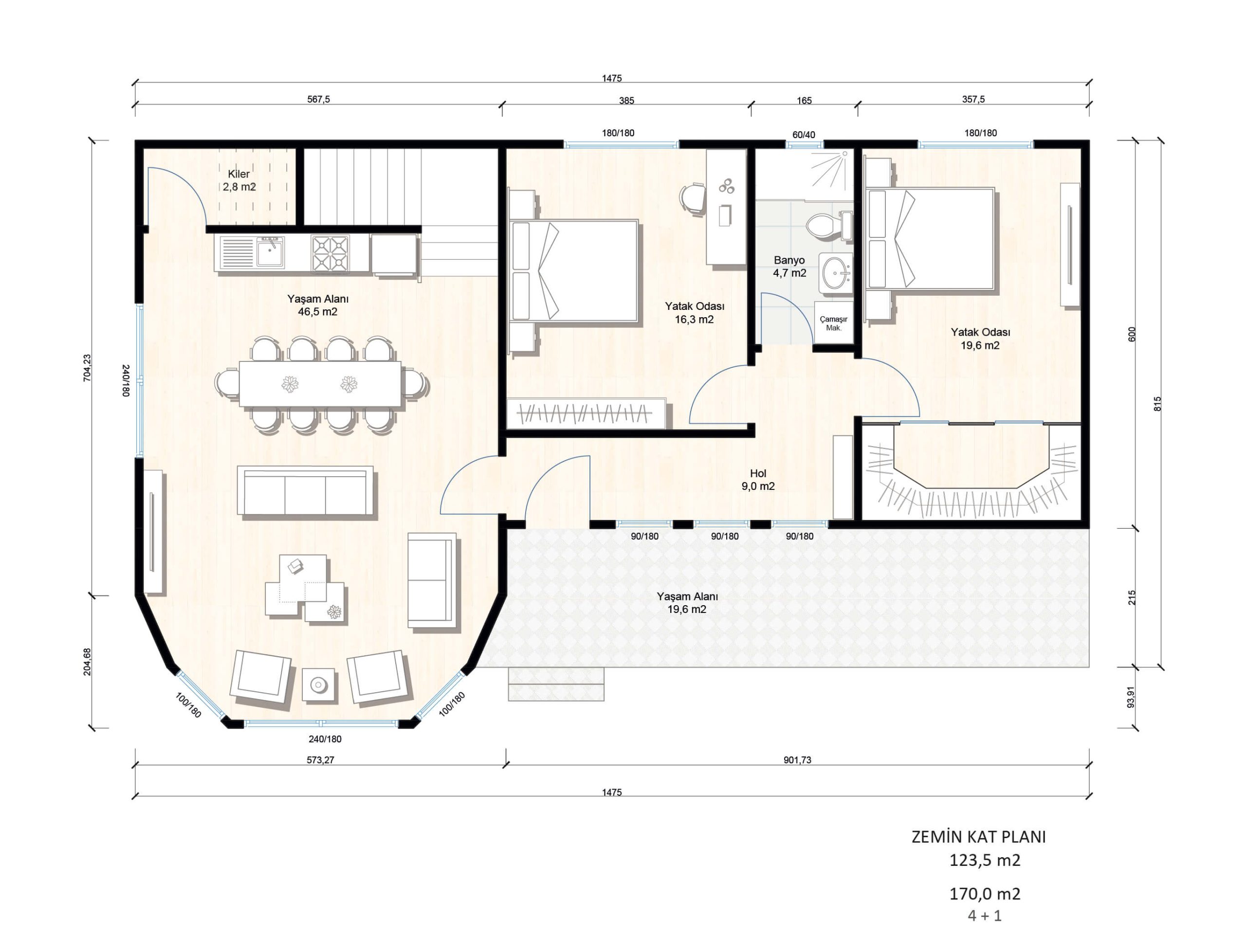 - Вкупна Површина: 170 m²