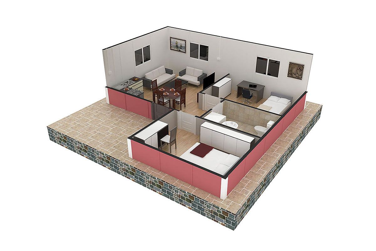 51 m² еднокатната префабрикувана куќа, со план 1+1, нуди компактен и функционален простор за живеење. И покрај малата квадратура, благодарение на паметниот распоред, обезбедува удобно користење. Со својот модерен дизајн, е идеален избор за оние кои сакаат да создадат практичен и естетски простор за живеење.