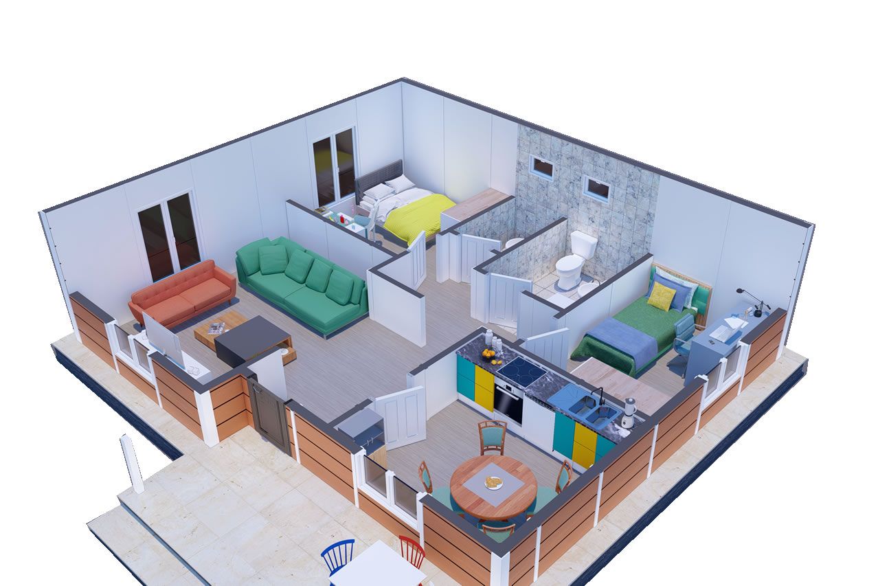 75 m² префабрикуваната куќа е еден од најчесто избраните модели во типот на живеалишта 2+1. Оваа структура, дизајнирана со современа архитектонска концепција, нуди долготрајно и безбедно живеалиште. Благодарение на ергономското внатрешно планирање, се создадени пространи и функционални соби, а удобноста на секојдневниот живот е подигната на највисоко ниво. Со елегантниот надворешен дизајн и верандата, обезбедува естетско и мирно животно искуство.