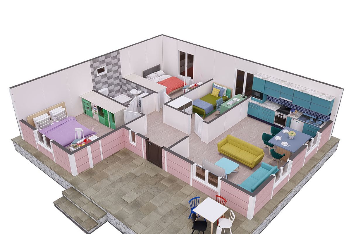 87 m² Еднокатна Челична Префабрикувана Куќа 3+1