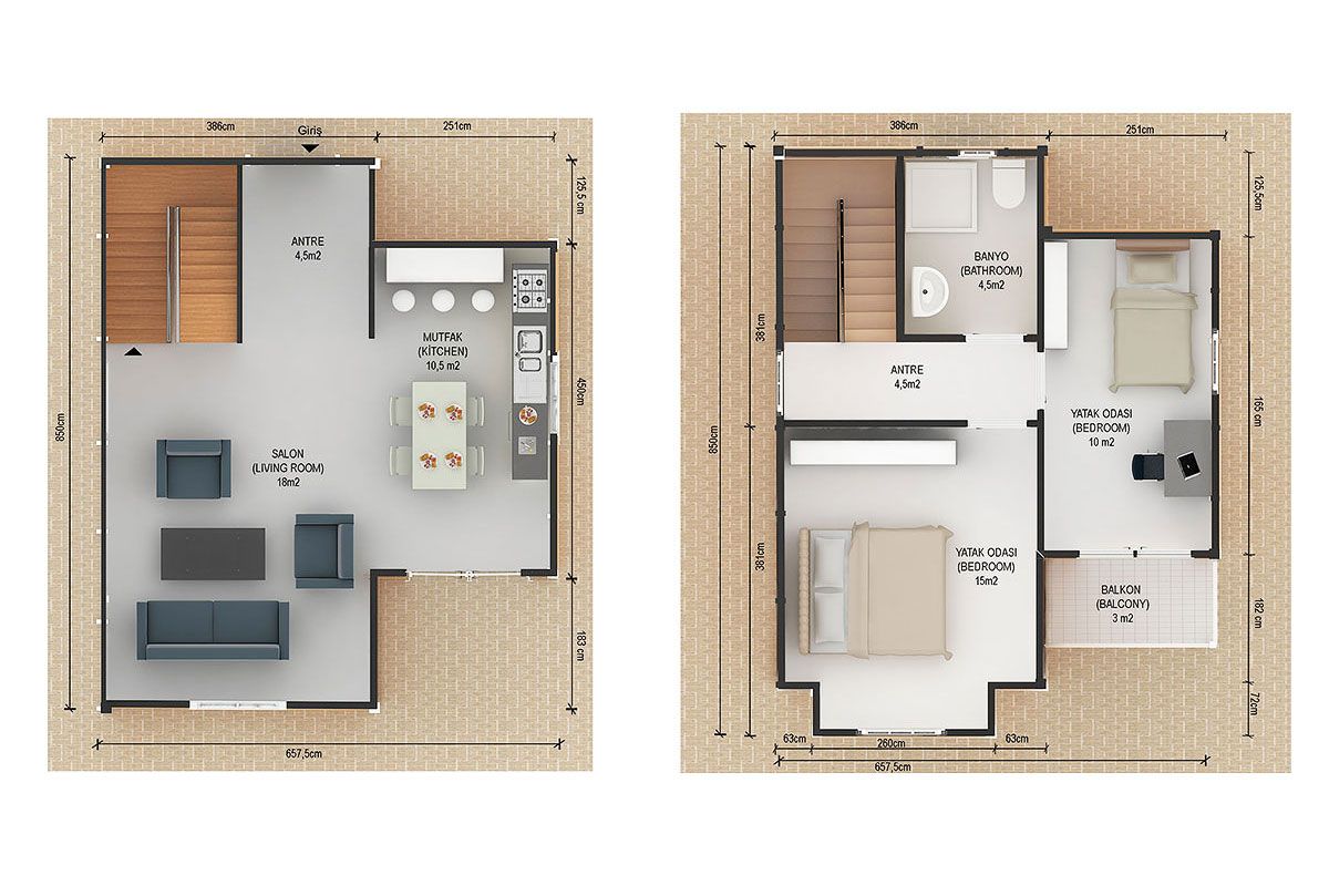 Класична архитектура со модерни рефлексии во моделот на префабрикувана вила од 91 m². Традиционалните архитектонски испакнатини на нашата архитектура вешто се пренесени во овој дизајн на куќа. Кога се гледа однадвор, веднаш се забележува дизајнот на куќата како во традиционалната архитектура. Испакнатините на куќата, верандата и балконот кои ја прават надворешноста привлечна се среќаваат со успешен пример на моделот на куќа 2+1 во внатрешноста. Правиот избор за секое патување низ историјата е префабрикуваната вила од 91 m².