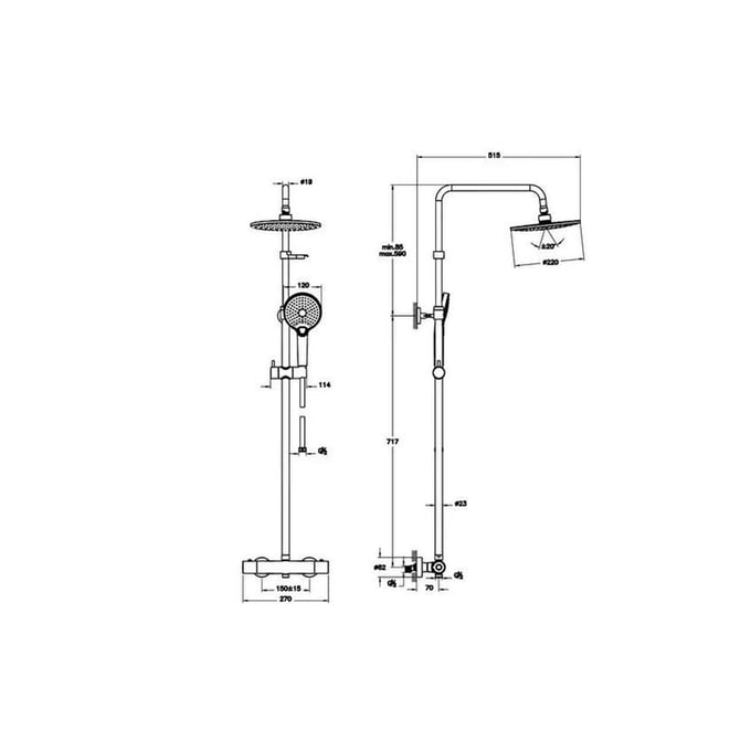 - Главен Туш: 220 mm дијаметар, фиксна глава за дожд