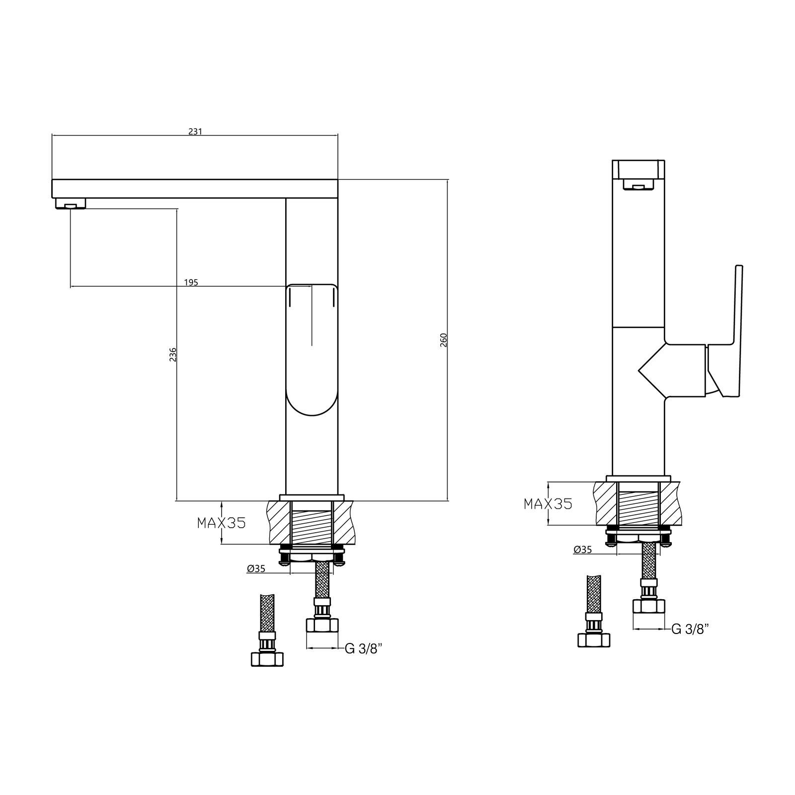 - Мерки за поврзување на флексибилните цевки за топла и ладна вода: M10x1 – 3/8”, 50 см