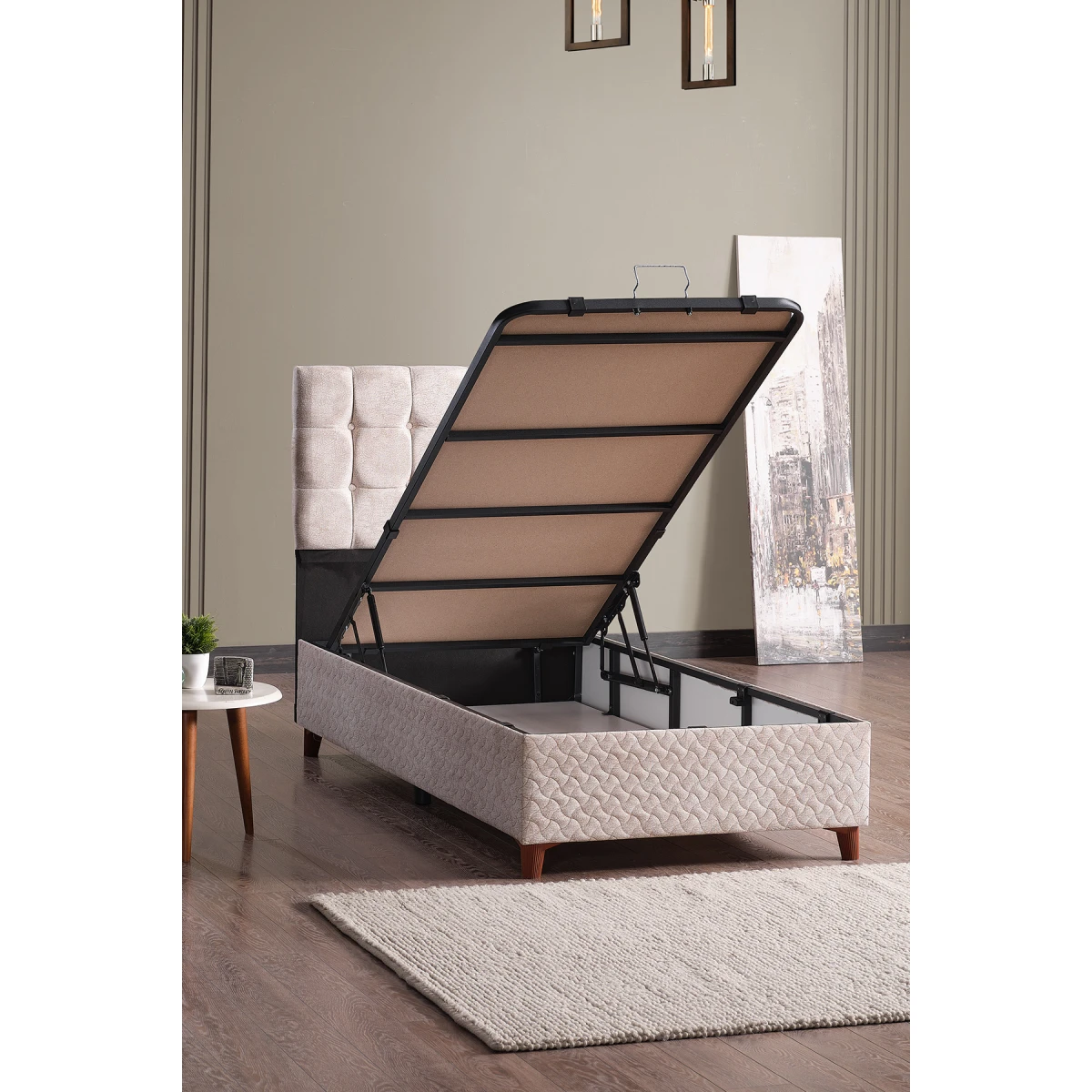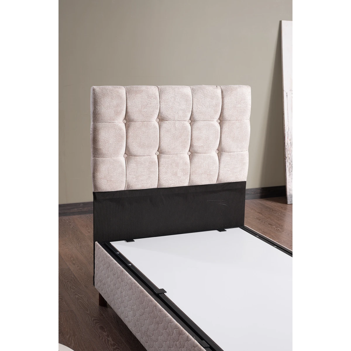 Bengü Единечен легло, Наслон и Душек; со својот елегантен крем боја, цврста структура и удобен дизајн, му дава на вашата спална соба префинет изглед. Благодарение на издржливата метална рамка на леглото, ергономскиот наслон и квалитетната структура на душекот, нуди долготрајно и удобно искуство на спиење.