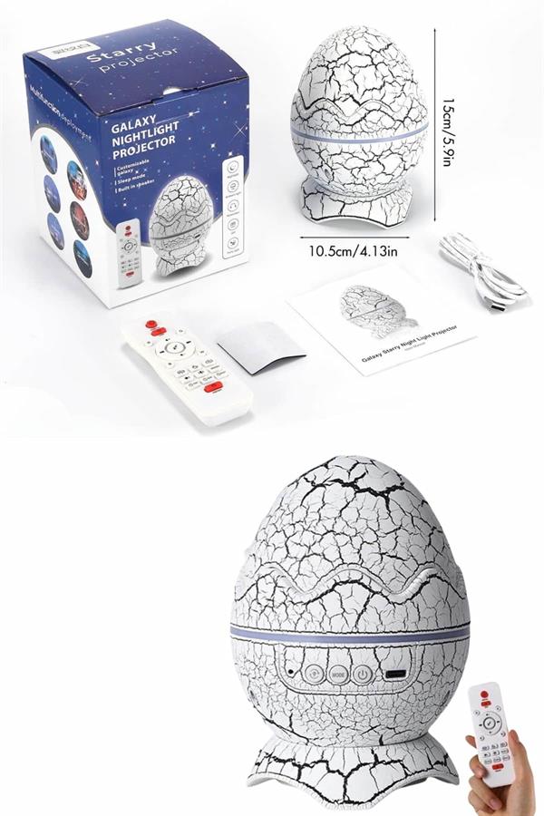 Проекторот со дизајн на јајце од диносаурус привлекува внимание и може да се користи не само за деца, туку и како стилски додаток во дневната соба. Тоа е идеален производ за создавање атмосфера која може да се користи во различни средини. Без разлика дали е романтична вечер, за забава, играње со деца или гледање филм, секој момент може да стане посебен.