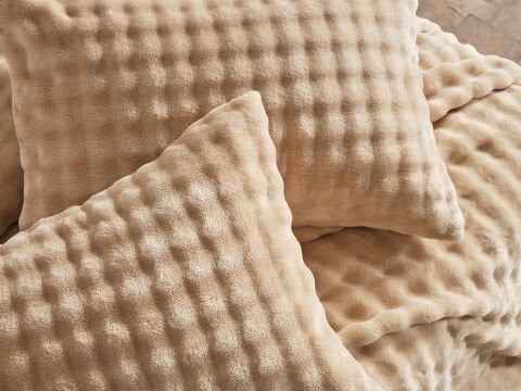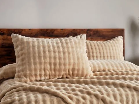 Bubble Прекривка Сетот, со својата мека текстура и стилска беж боја, додава топол и модерен изглед на вашата спална соба. Идеален за секојдневна употреба, сетот нуди удобно и естетско искуство.