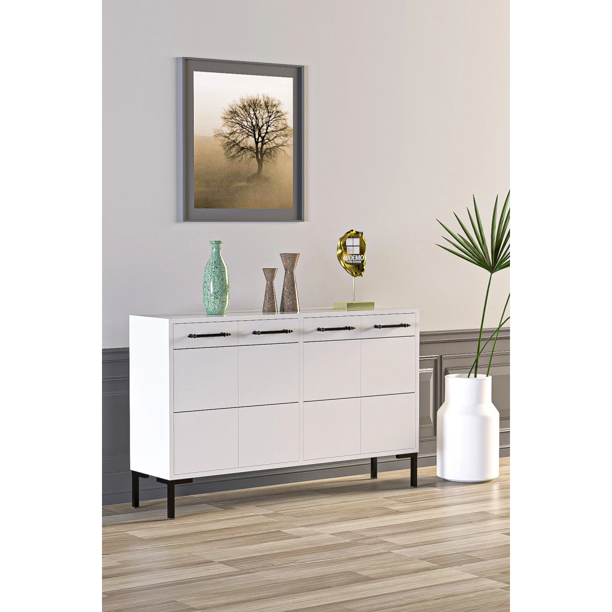 Бухара Модерен Конзол; со својот бел елегантен дизајн, додава модерен и елегантен допир на вашиот дом. Како главен материјал е користена 1. класа иверка (сундјер). На рабовите е применета ПВЦ лента со дебелина од 0,60 мм. Шарки се од 1. класа и се загарантирани, а врските на производот се направени со алански завртки. Во пакувањето се користени стиропорни агли за максимална заштита при транспорт. Користените материјали се во согласност со европските Е1 стандарди за квалитет и се произведени од суровини кои не се штетни за здравјето и не содржат канцерогени материи. Производот е произведен со материјали кои се погодни за животната средина и здравјето на децата, антиканцерогени и антибактериски.