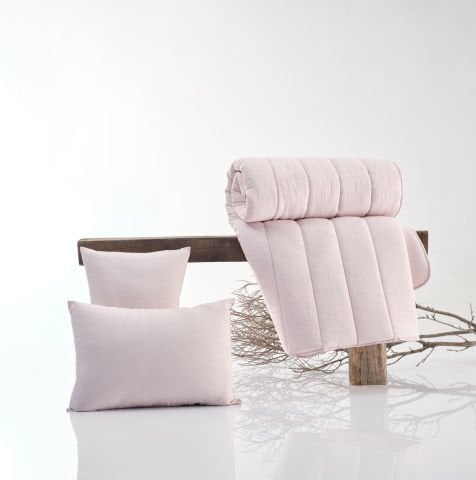 Јорган сетот Cloudy во пудра боја, изработен од 100% микрофибер ткаенина, нуди меко и лесно спиење со комфор како памук. Со својата повеќенаменска употреба, обезбедува удобност во сите четири сезони и додава елегантен изглед на спалната соба.