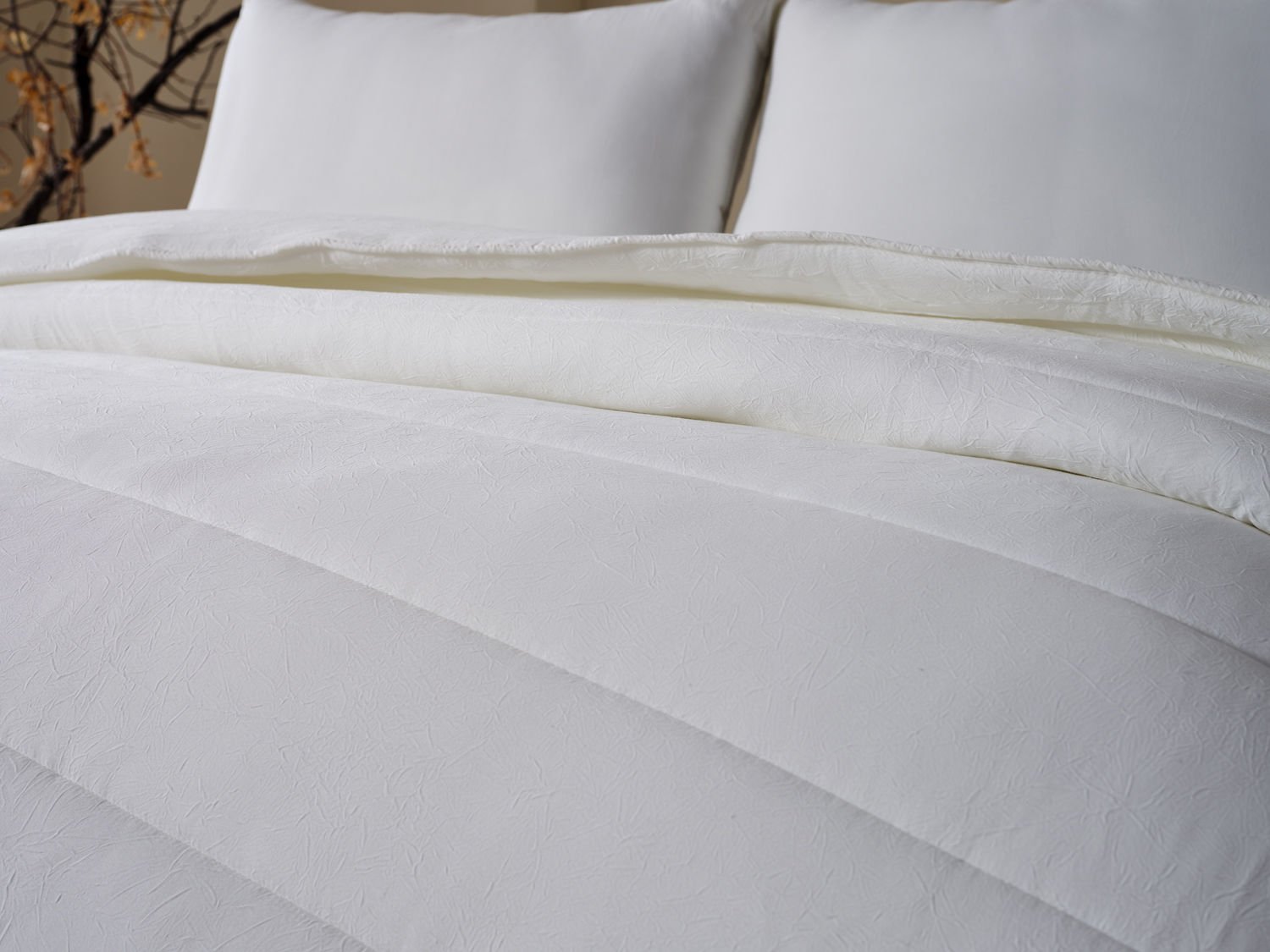 Cloudy јорган сетот во екру боја, изработен од 100% микрофибер ткаенина, обезбедува лесен и мек комфор за спиење со својата памучна текстура. Сетот е погоден за повеќенаменска употреба и нуди удобност во сите сезони со својата топла структура.
