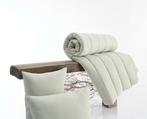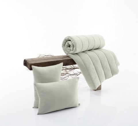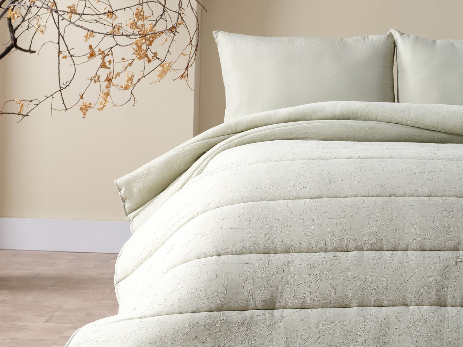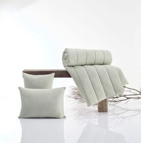 Комплетот зелен Cloudy јорган, изработен од 100% микрофибер ткаенина, нуди удобност во текот на сите четири сезони со својата памучна текстура и лесна структура. Со својата повеќенаменска употреба, додава елеганција и удобност во спалните соби.