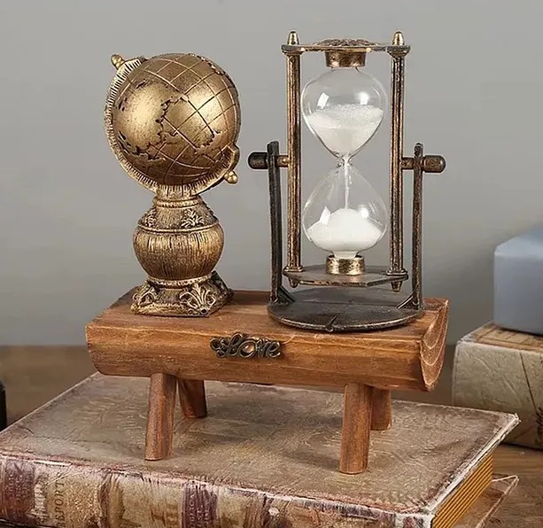 Декоративниот светски библолен песочен часовник нуди естетски дизајн и е идеален за вашата работна површина. Со димензии од 18×15 см, тој има времетраење на проток на песок од 27 секунди.