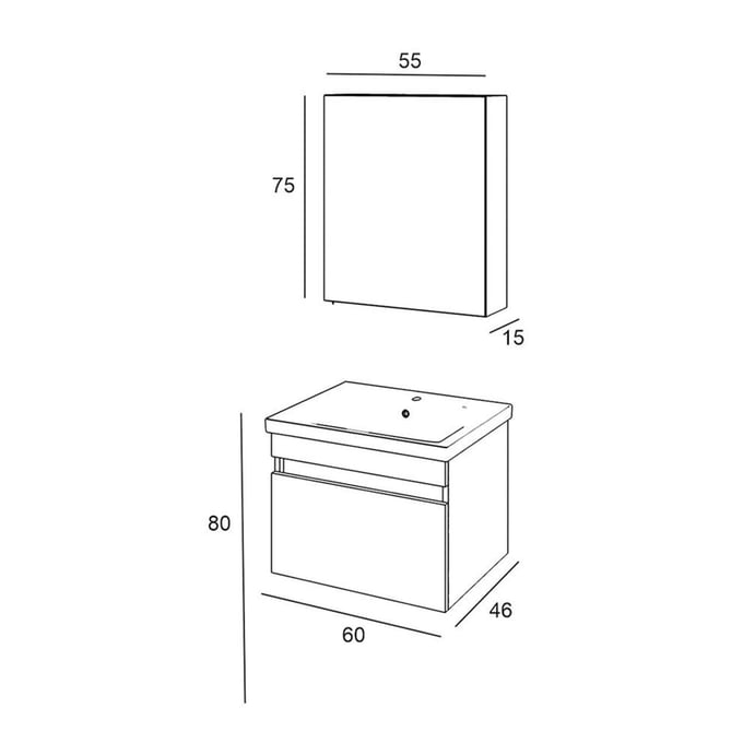 DENKO Повеќе 65 cm MDF Бања Гарнитура, со модерен дизајн и шик црна боја, додава естетска допир на вашата бања. Корпусот е изработен од црно MDF Лам, а вратите се изработени од материјал MDF покривен со црна мат силикон. Со коцкирани врати обезбедува тивок и удобен доживување при употреба. Со серамички умивалник и огледален горен модул, сетот е комплетиран и нуди функционално решение за бања.