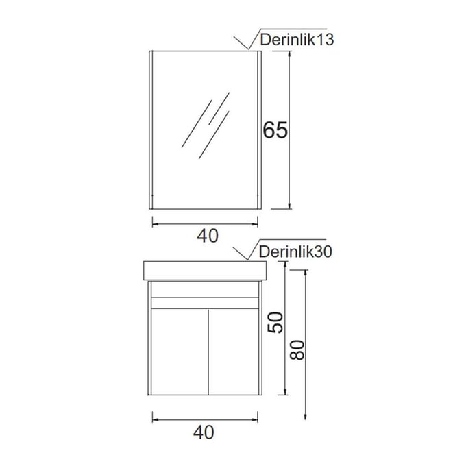Denko Natalia 40 цм МДФ Сив Кул Бања Гардероба Сет и Гардероба за Црта.