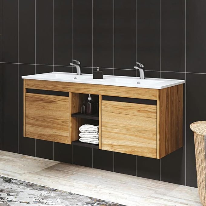 Denko Twin 120 cm Бања Комплет, со голем простор за складирање и елегантен дизајн, додава елеганција на модерните бањи.