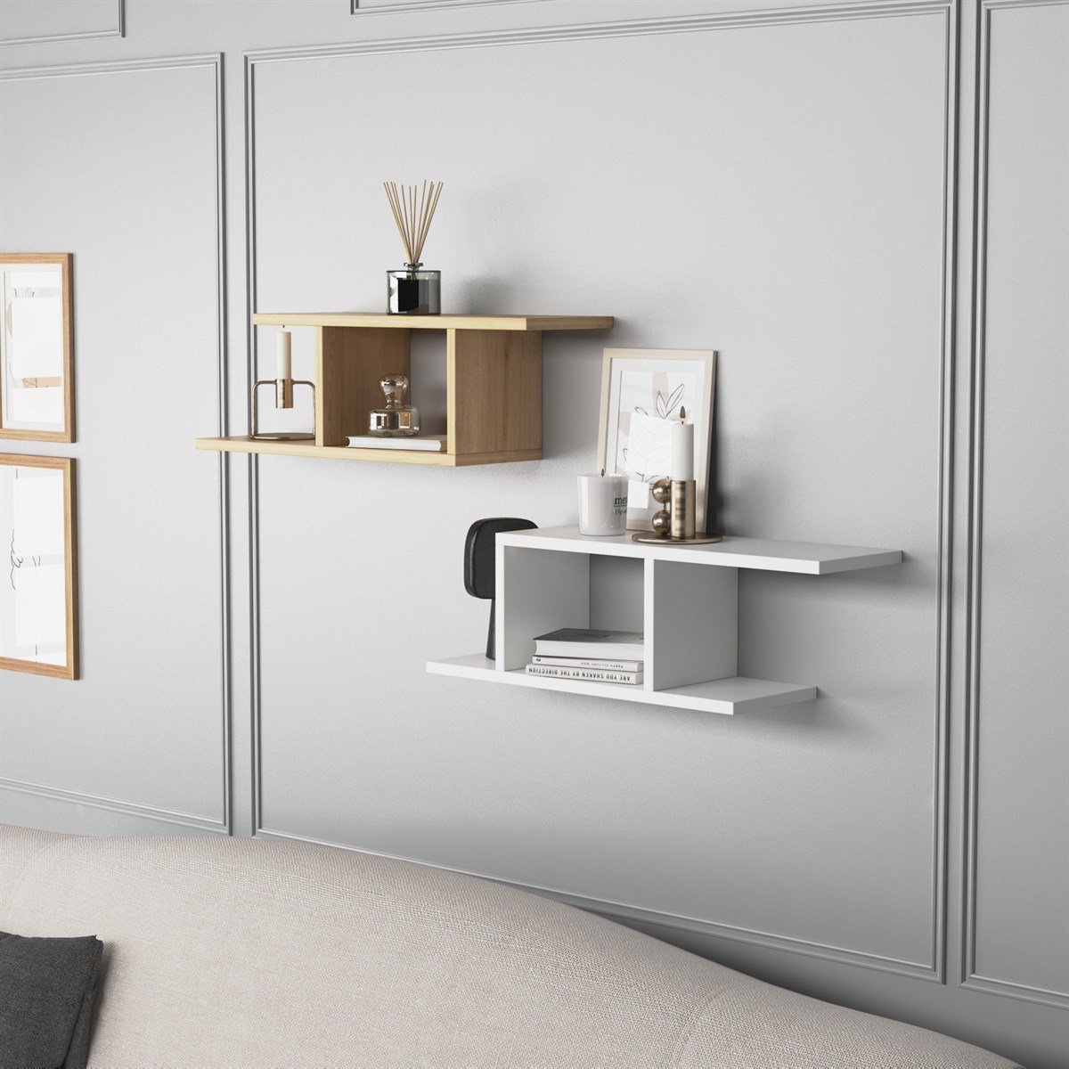 Области на користење: Обезбедува идеална употреба за декоративни предмети, книги, рамки и аксесоари во дневната соба, салонот, спалната соба, работната соба, канцеларијата, кујната и ходникот.