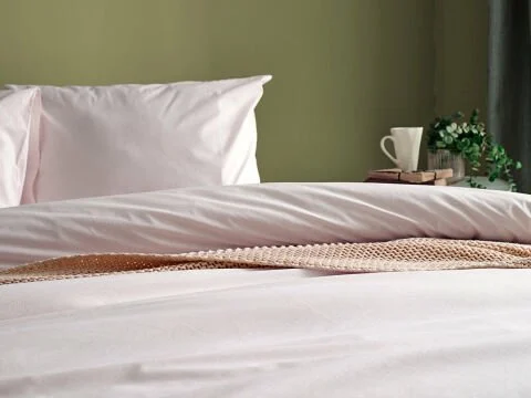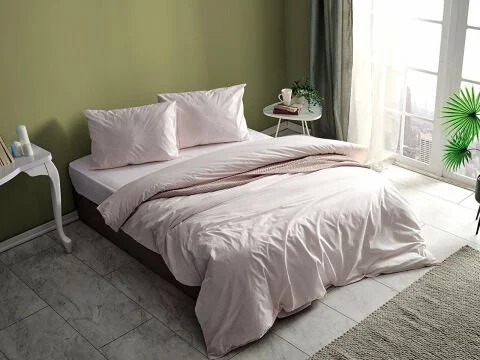 Изработен од 100% памучна ткаенина, комплетот за постелнина за една личност е софистициран и удобен во мека пудра боја.