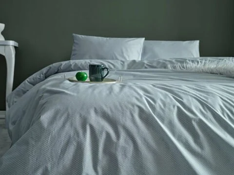 Произведен од 100% памучна текстурирана ткаенина, со мека зелена боја, овој стилски и удобен постелни комплет е за едно лице.