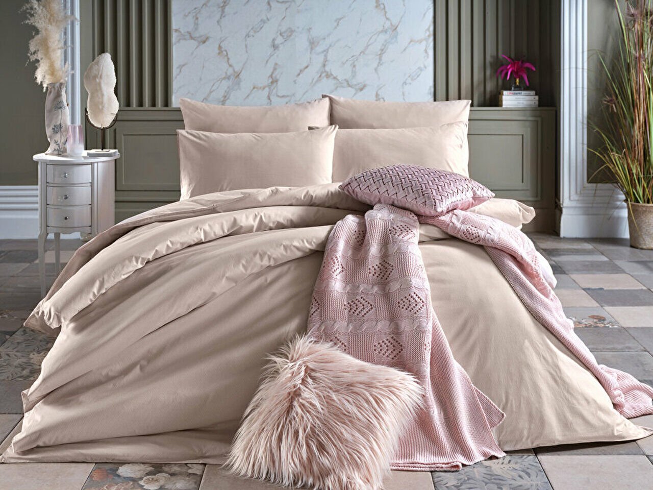 %100 памук, меко беж боја, дишечка двојна кинг сајз постелнина.
