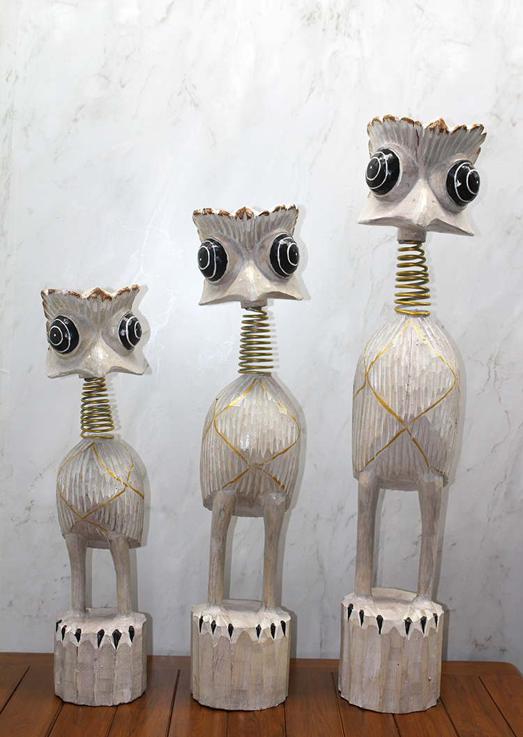 Дрвен 3-лен сет на страус е впечатлив декоративен објект, составен од три фигури на страус во различни големини од 60 см, 70 см и 90 см. Овие фигури се рачно насликани и изработени со внимание на деталите, што ги прави идеални за модерна и елегантна декорација.