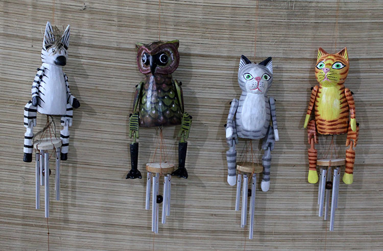 • Главни карактеристики: Природно дрво, шарени фигури на животни, метални звона