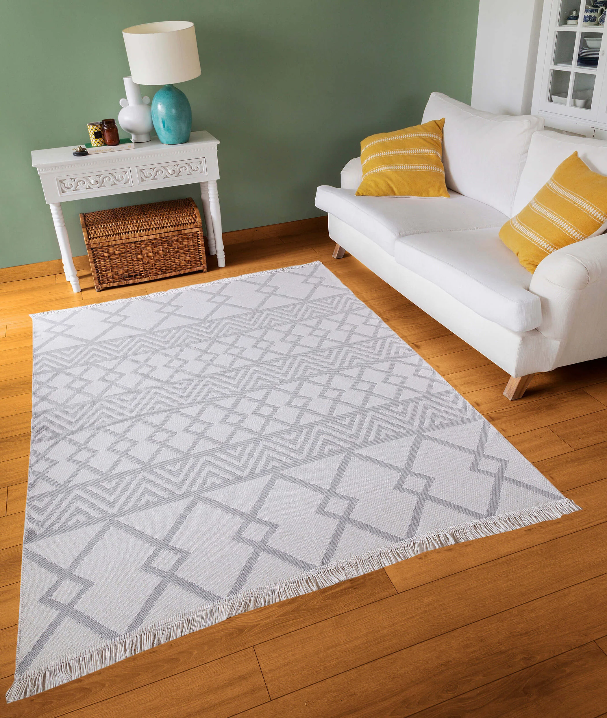 Карактеристики: Двострана употреба, перлив, издржлив, природна памучна ткаена тепих.
