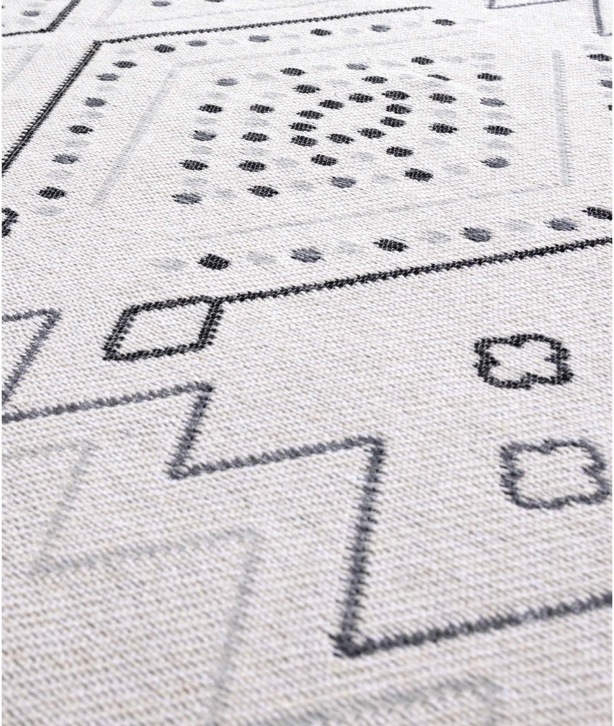 Дизајниран со скандинавски геометриски шеми, Duo крем килимот нуди флексибилност во вашата декорација со својата двострана употреба. Со 100% памучна текстура и висококвалитетна изработка, обезбедува елегантна и издржлива употреба.