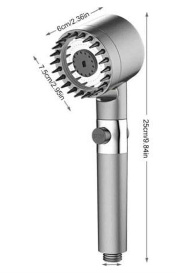 Нова генерација на душ глава со масажен врв, не само што нуди искуство на туширање, туку и нежно го чисти вашето тело и ве опушта со масажниот ефект. Специјалните масажни врвови овозможуваат водата да продре поубаво и подлабоко во вашата кожа, помагајќи да се опуштат мускулите и да се ослободите од заморот на денот. Со лесни движења на триење, можете да уживате во уникатно искуство на туширање.