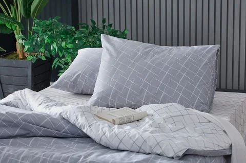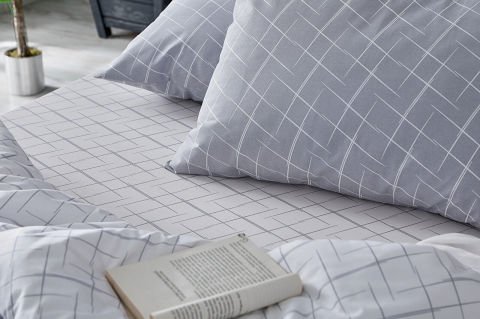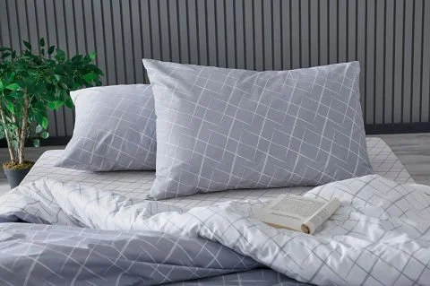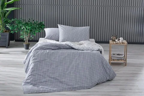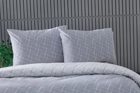 Со ткаенина составена од 65% памук и 35% полиестер, оваа постелнина е издржлива, лесна за чистење и го задржува својот свеж изглед долго време. Со својата сива боја, додава модерен и елегантен изглед на спалната соба.