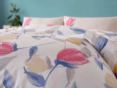 Постелниот комплет Tulips, со своите пудра розеви нијанси и цветни дезени, му дава елегантен и свеж изглед на спалната соба. Благодарение на меката текстура, нуди удобен сон.
