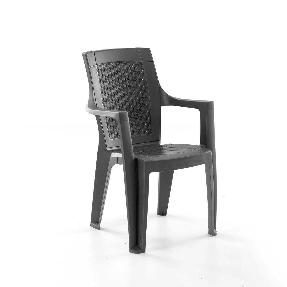 Елегантен сет од столчиња со изглед на ратан во црна боја, изработен од издржлив полипропилен материјал, погоден за надворешна употреба. Обезбедува удобно седење и е лесен за чистење. Се испорачува како сет од 4 столчиња.