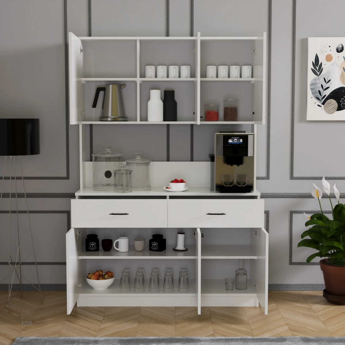 Elmas Мултифункционален Орман за Кафе Агол / Бела