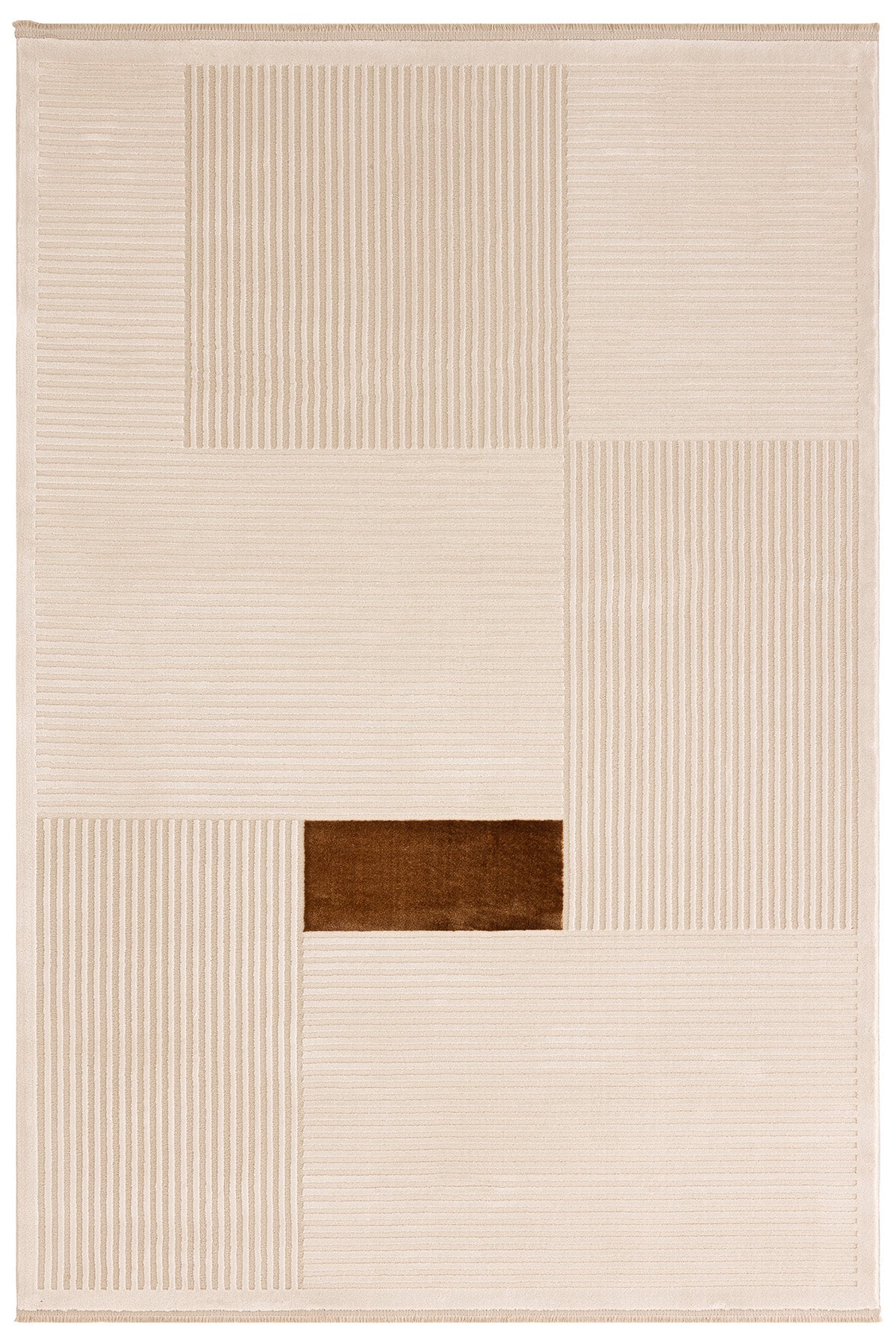 Овој геометриски дизајниран тепих од колекцијата Фарахан, создаден со хармонија на елегантните крем и цимет нијанси, ќе додаде едноставна елеганција на вашите животни простори. Изработен од мешавина на полипропилен и полиестер, тепихот нуди долготрајна употреба со својата мека текстура и издржлива структура. Со својството да не собира прашина и лесно се чисти, обезбедува естетско и практично решение за внатрешни и надворешни простори.