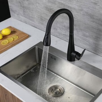 - Ротирачката цевка од 360° овозможува лесен пристап во двојни мијалници.