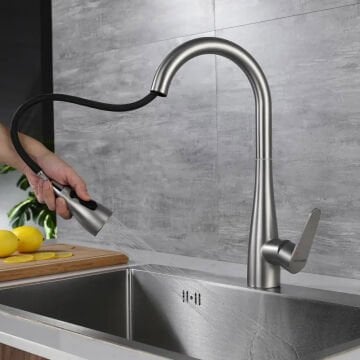 Со 360° ротирачка цевка, обезбедува широка работна зона и практична употреба во двојни мијалници.