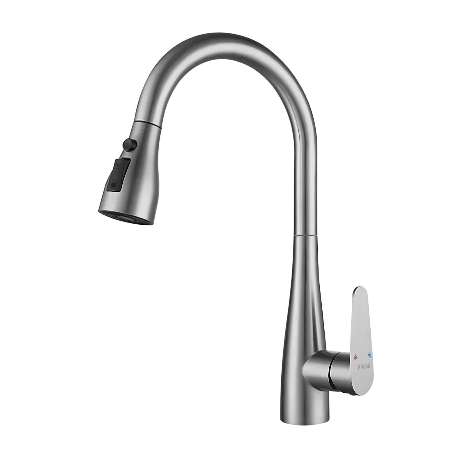 Спиралната мијалник батерија Fause KTE125-BR, со четка никел површина, му дава елегантен изглед на модерните кујни.