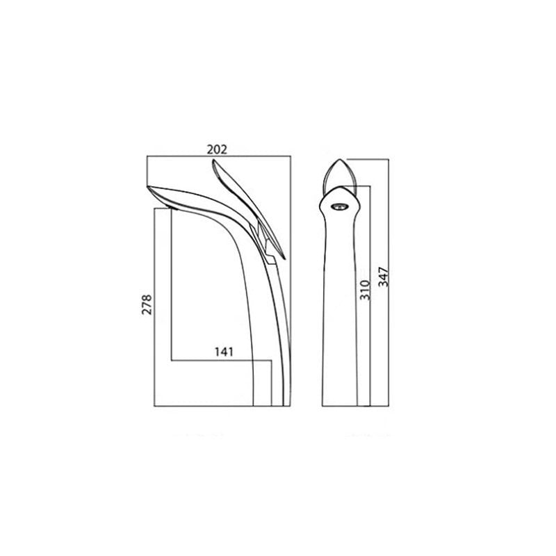 Фаусе Висок Чешал Лавабо Слушалка Лист Црна KSL103-B, со својот модерен дизајн и детал на ракав од модел на лист, додава елеганција на вашата бања. Овој слушалка со мат црна обвивка нуди естетска појава и овозможува заштеда на вода со дебит од 8 л/мин благодарение на неговиот посебен аератор. Со серамички картидж со регулирање на температурата и дебитот на водата, лесно можете да го контролирате топлината и текот на водата. Со должина на излезниот вод 141 мм и висина на излезниот вод 278 мм, обезбедува удобно користење. Висината на производот е 347 мм, а за поврзување на топла иладна вода може да се монтира со флексибилно цевче М10х1-3/8” од 60 см. Идеалниот работен притисок е од 3-4 бара и производителот нуди гаранција од 2 години. Се препорачува употреба на филтрирана слушалка за спречување на штетата од замрсувањето на арматурата.
