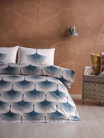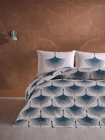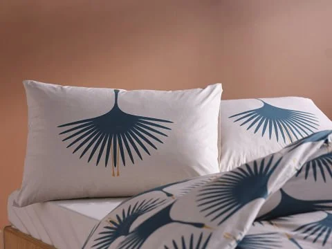 100% памук, 57 нишки, дишечка и мека текстура, единечна постелнина. Обезбедува модерен изглед со живописна туркваза боја и дезени.