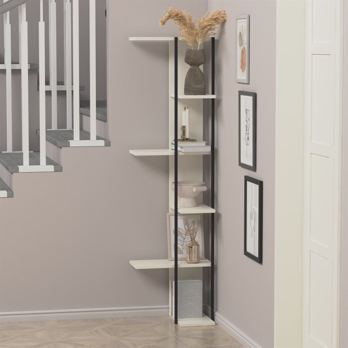 Области на Користење: Идеално за искористување на аглите во дневната соба, работната соба или детската соба, погодно за книги и декоративни предмети.