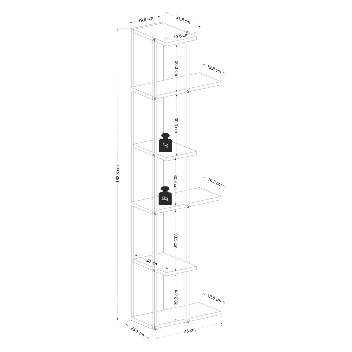Опис на Производот: FEZA Ќоше Поличка за Книги, со својот цврст и модерен дизајн, додава функционалност и елеганција на вашите животни простори. Телото е изработено од првокласен иверка материјал, додека металните делови се изработени од челичен профил и се обоени со печена статичка боја. Деловите се дизајнирани да се спојат на најцврст можен начин и монтажата е подготвена за лесно користење од страна на корисникот. Производот се испраќа во расклопена состојба; монтажа и инсталација се ваша одговорност. Произведено е во нашата фабрика во Турција и времето за испорака е околу 20 дена.