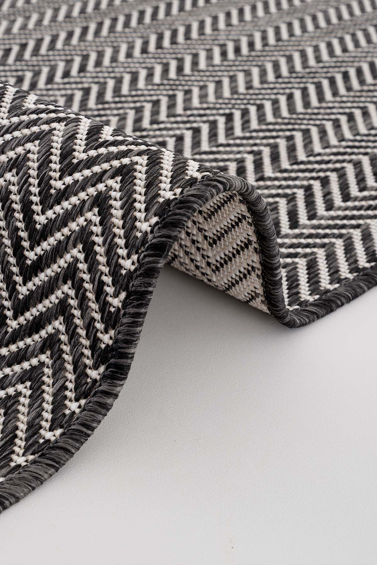 Тепихот Fresco, кој ги одразува модерните линии на скандинавскиот стил, создава елегантна атмосфера во балконските и кујнските простори со својот префинет изглед во црни тонови. Изработен од полипропиленски конец, овој тепих нуди издржливост, отпорност на дамки и долготрајна употреба благодарение на високата густина на јамките. Со својот перачки карактер, овозможува лесно одржување и практично решение.
